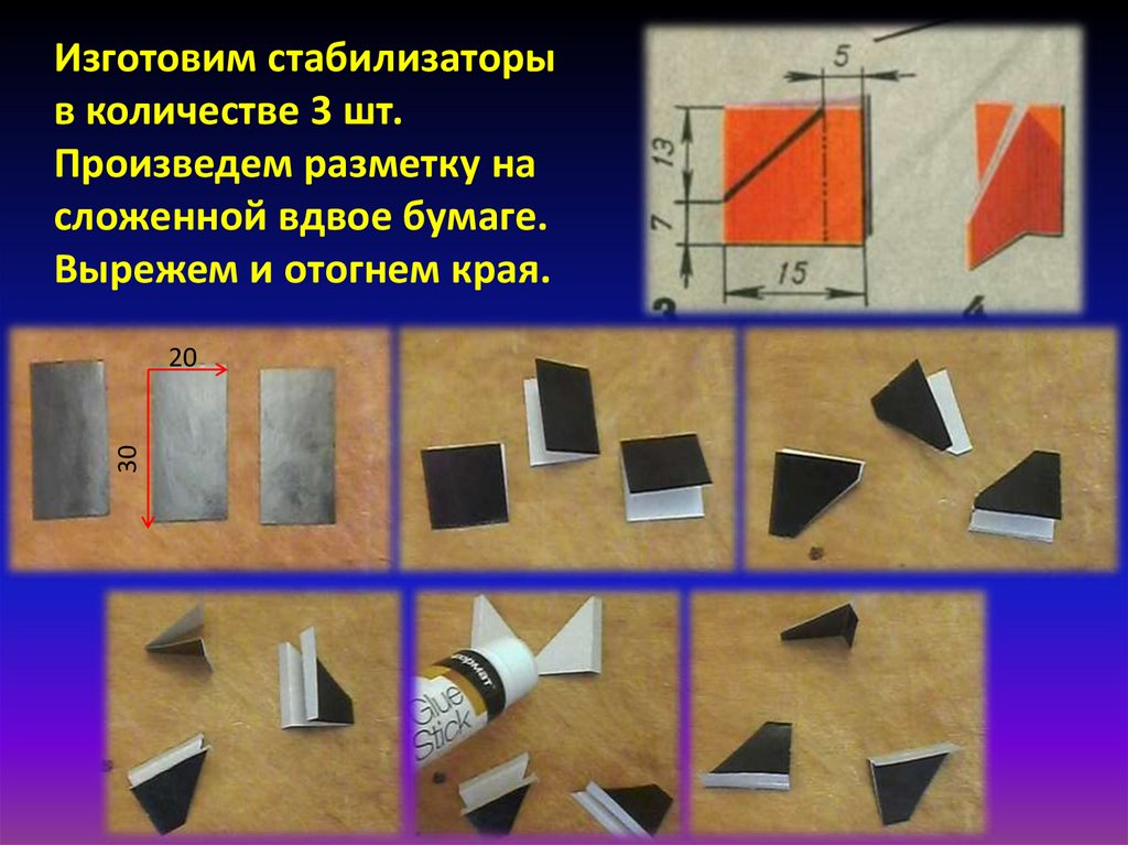 Приклеим стабилизаторы в количестве 3шт. на корпус ракеты (равномерно по