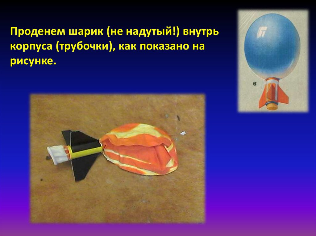 Проденем шарик (не надутый!) внутрькорпуса (трубочки), как показано на