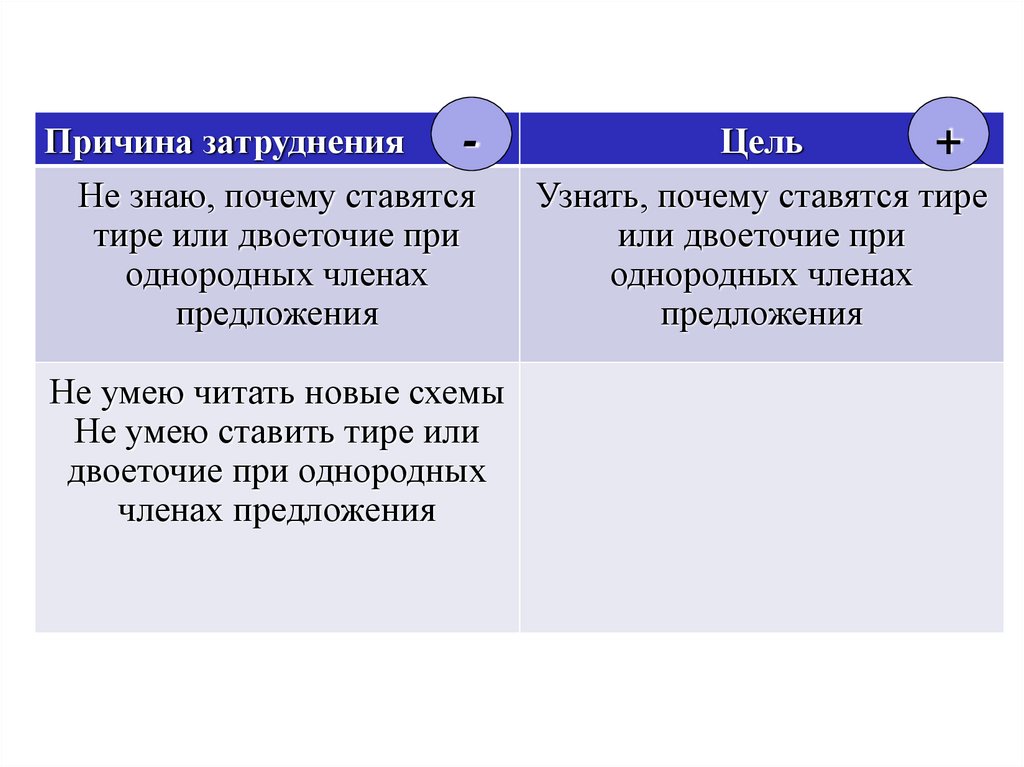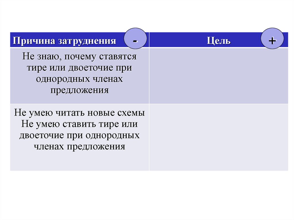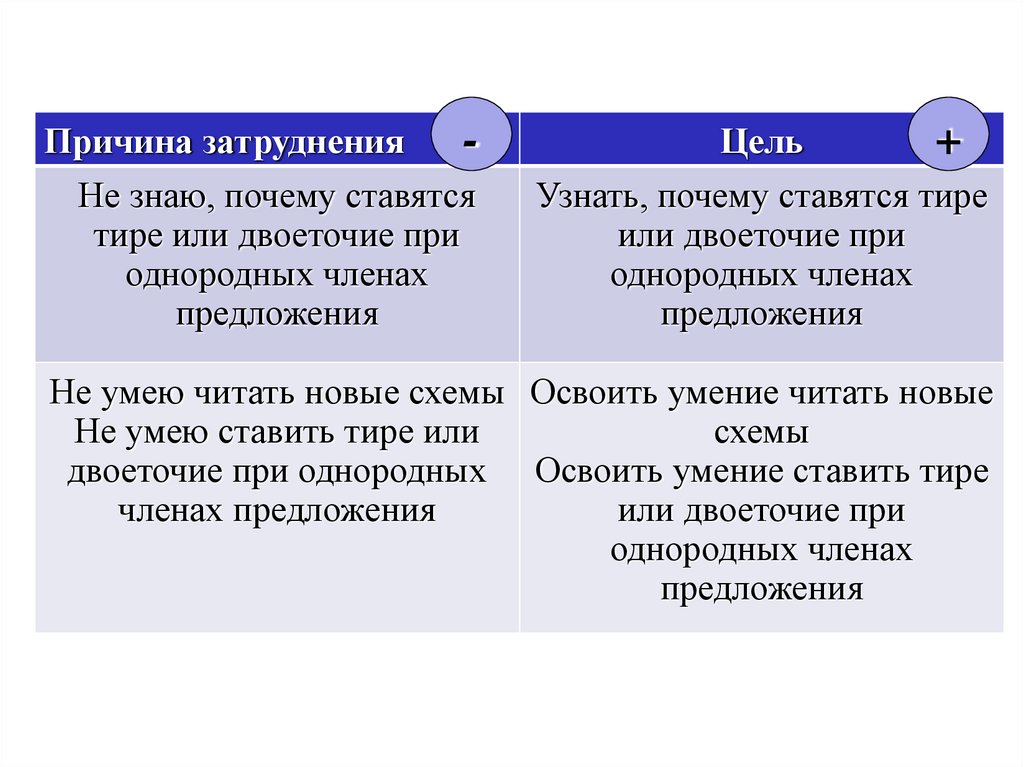 двоеточие при однородных Освоить умение ставить тире