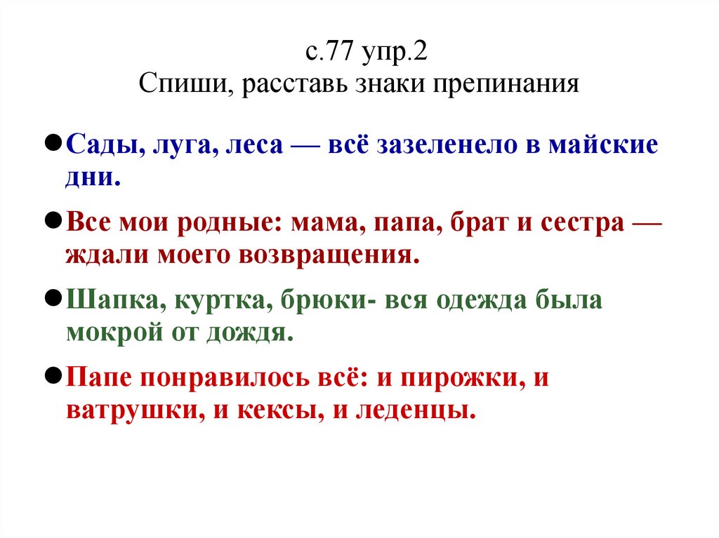 с.77 упр.2Спиши, расставь знаки препинания