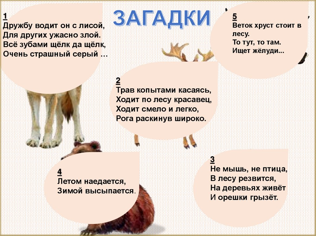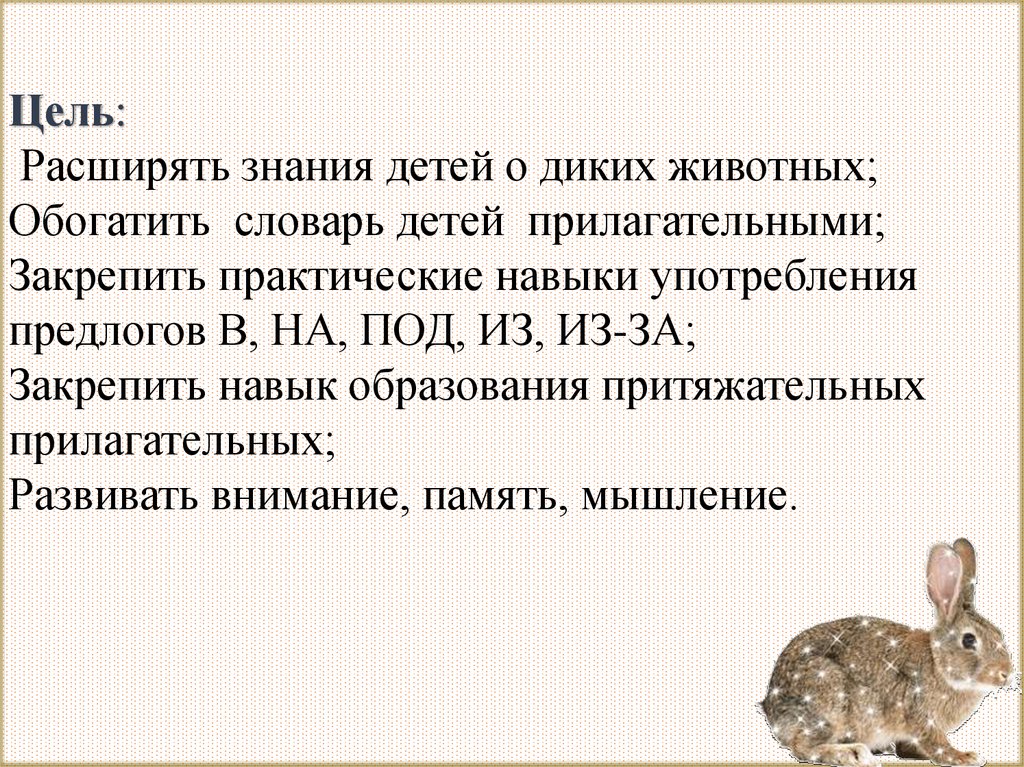 Цель:Расширять знания детей о диких животных;