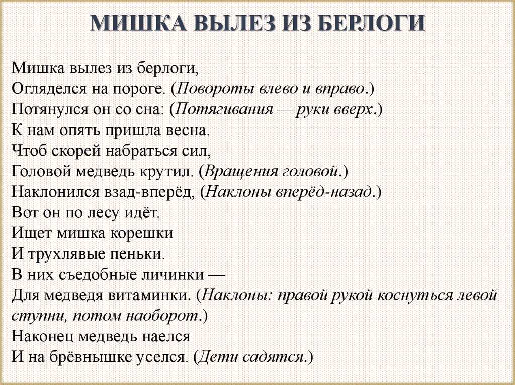 МИШКА ВЫЛЕЗ ИЗ БЕРЛОГИМишка вылез из берлоги,
