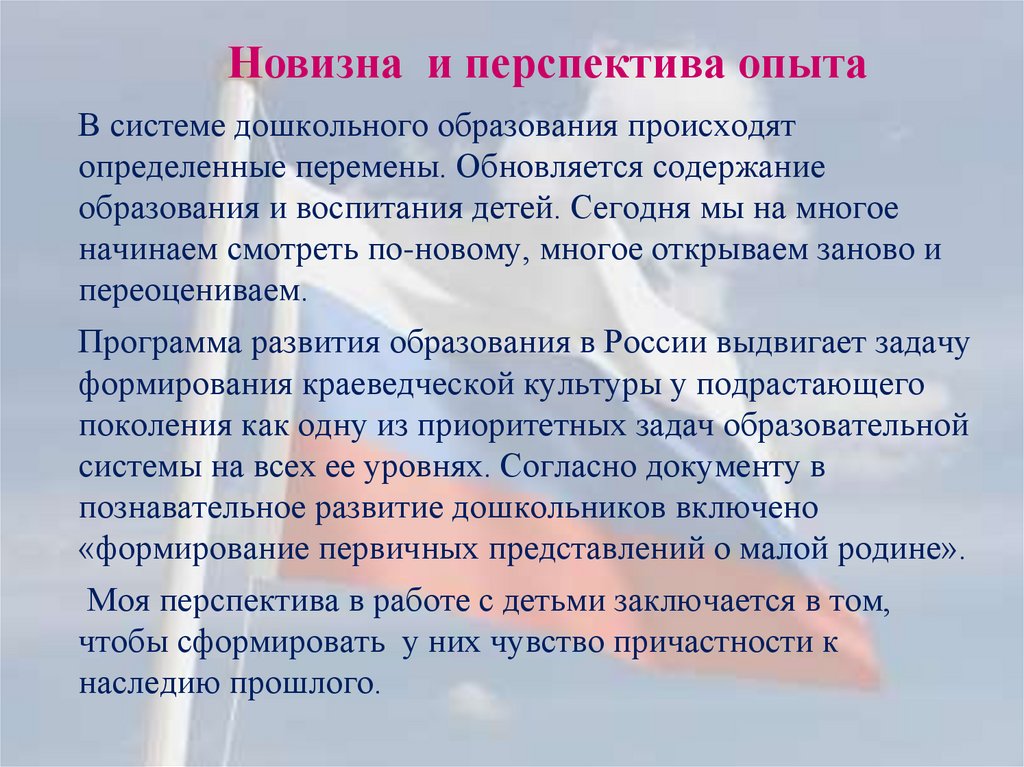 Новизна и перспектива опытаВ системе дошкольного образования происходят