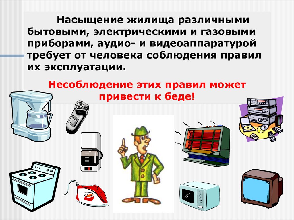 Насыщение жилища различнымибытовыми, электрическими и газовыми