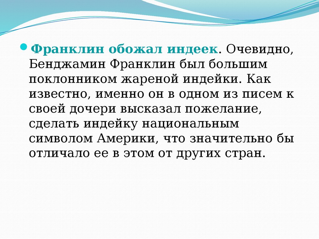 Франклин обожал индеек. Очевидно,Бенджамин Франклин был большим