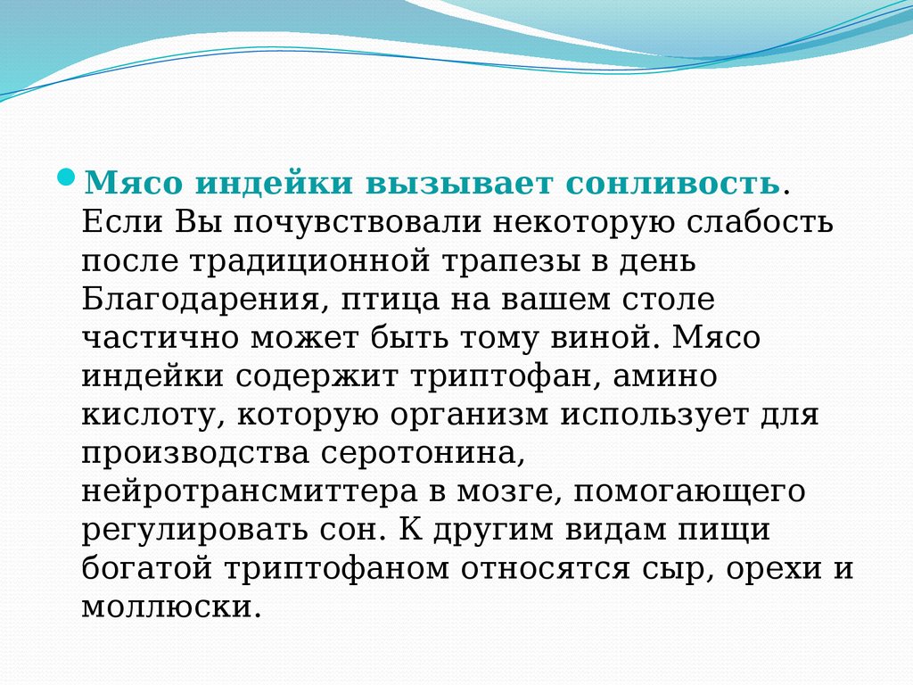 Мясо индейки вызывает сонливость.Если Вы почувствовали некоторую слабость