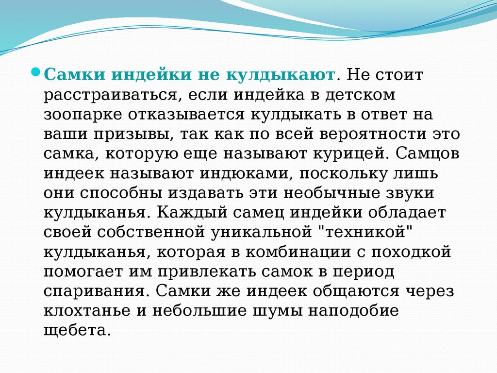 Самки индейки не кулдыкают. Не стоитрасстраиваться, если индейка в детском