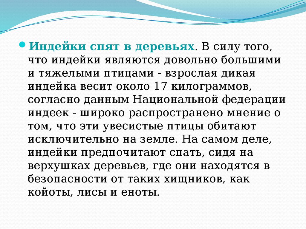 Индейки спят в деревьях. В силу того,что индейки являются довольно большими