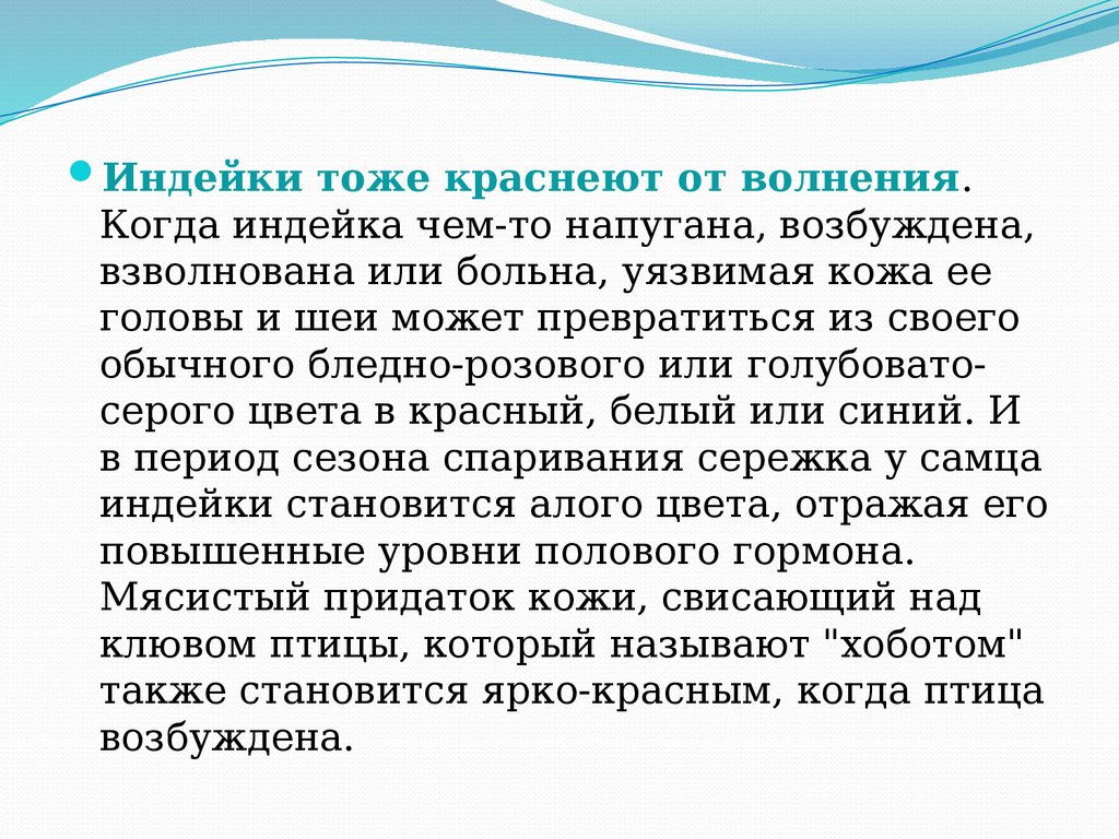Индейки тоже краснеют от волнения.Когда индейка чем-то напугана, возбуждена,