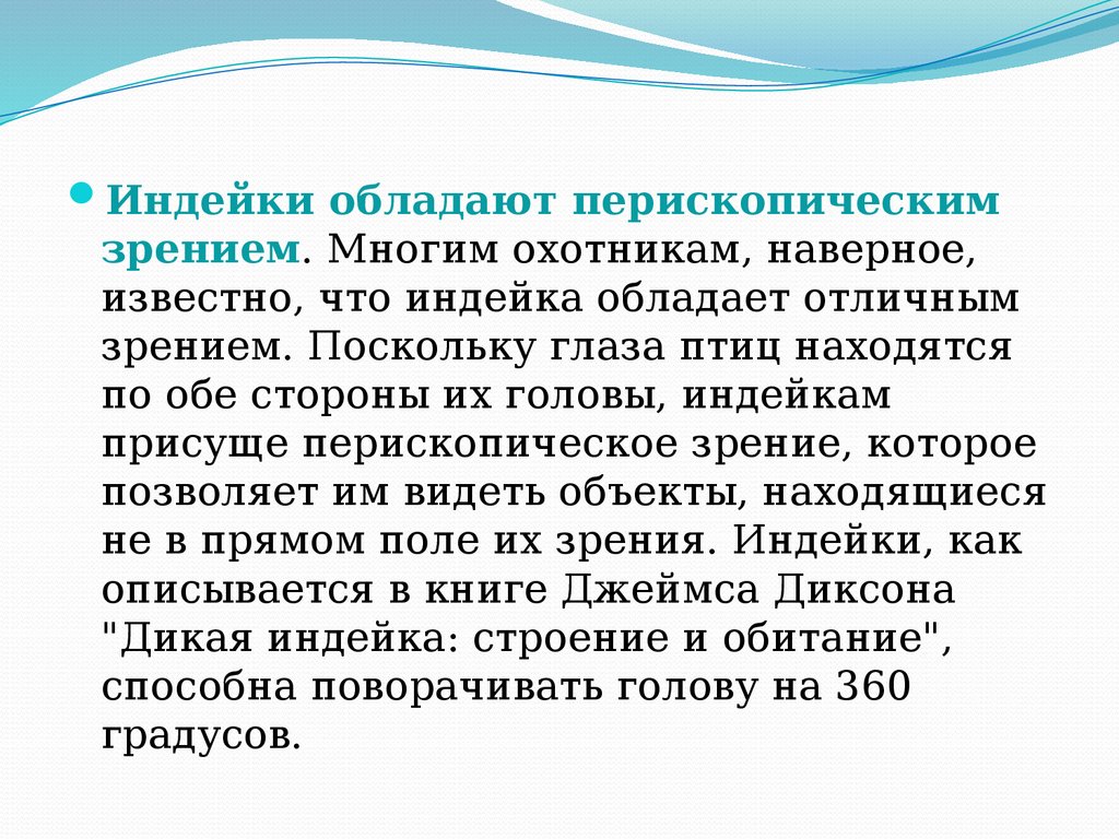 Индейки обладают перископическимзрением. Многим охотникам, наверное,