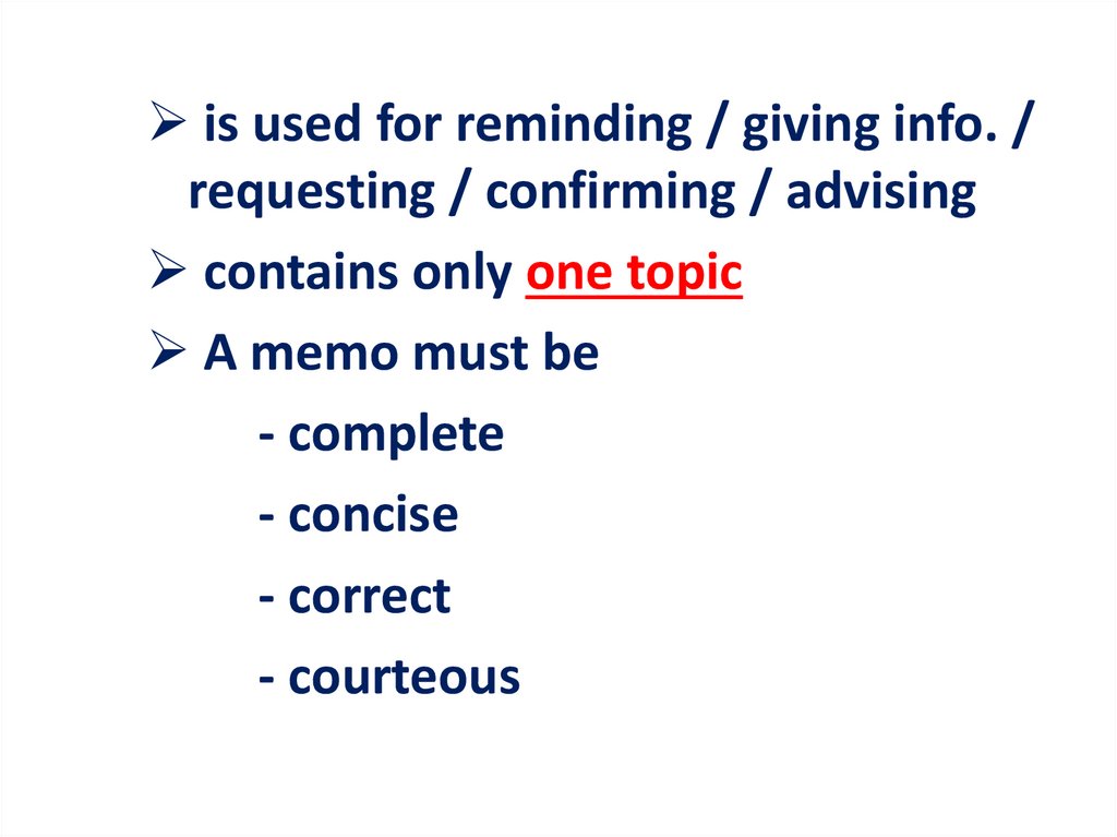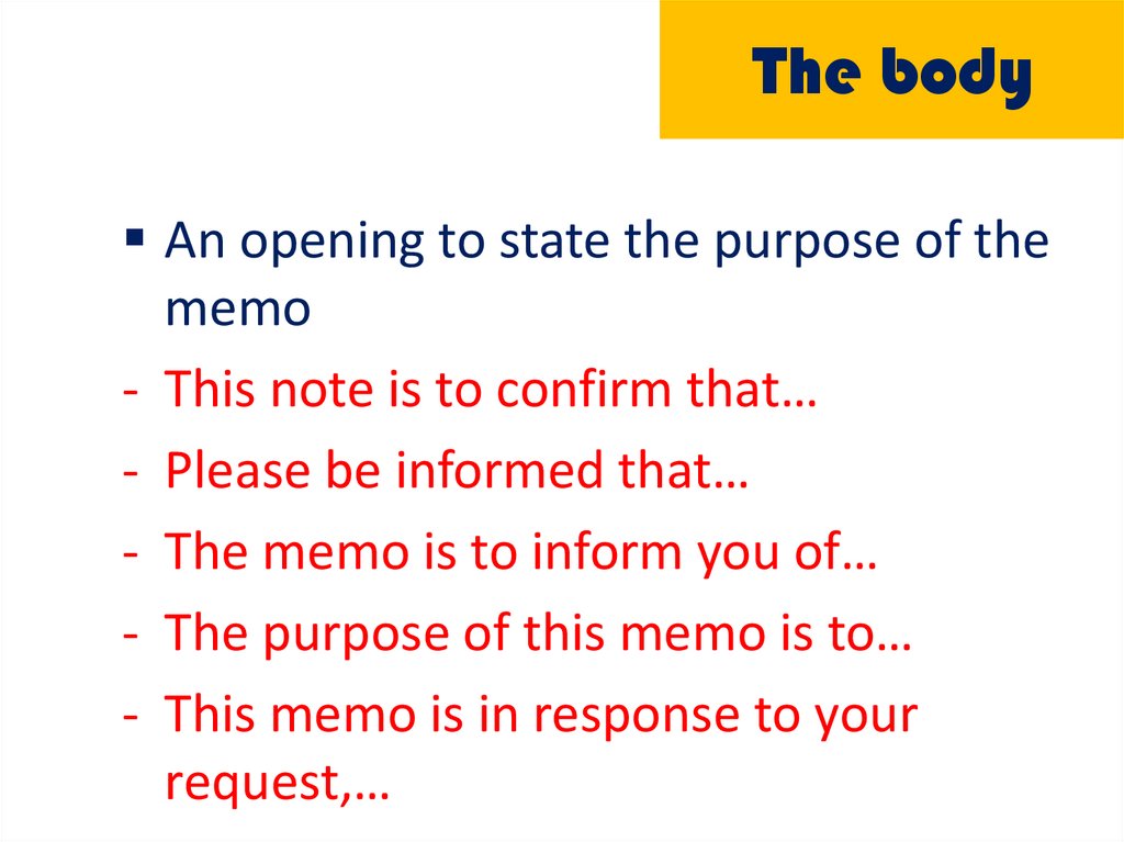 - The memo is to inform you of…