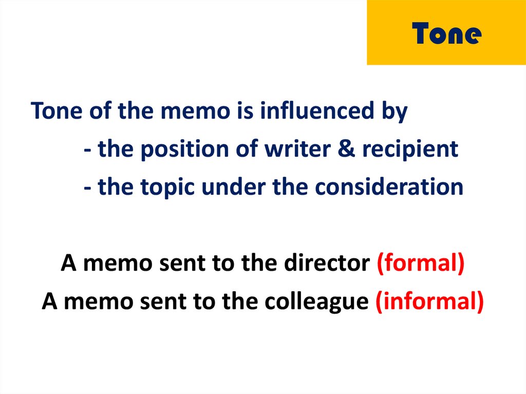 ToneTone of the memo is influenced by