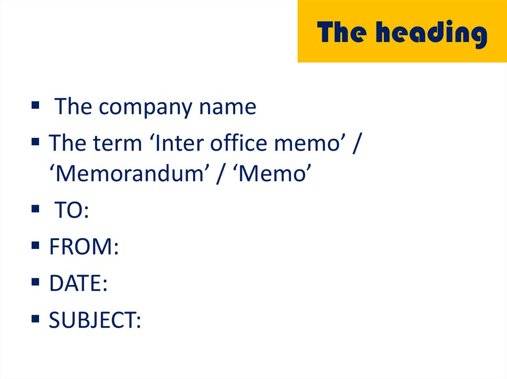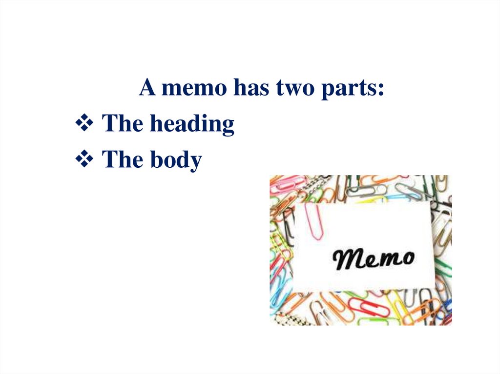 A memo has two parts:The heading