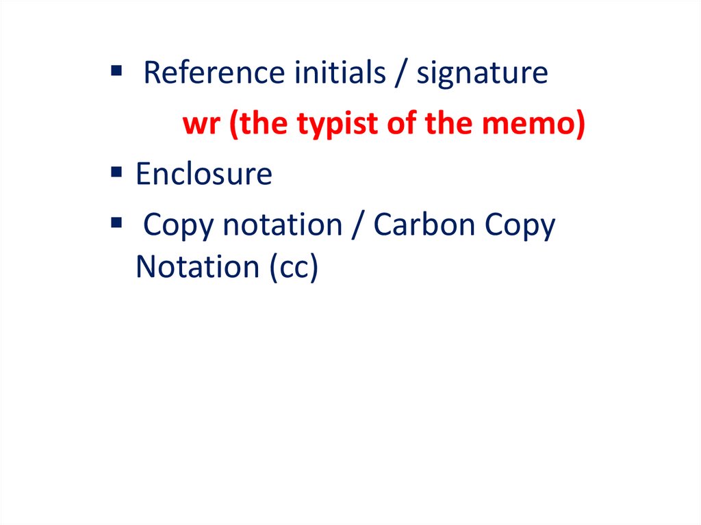 Reference initials / signaturewr (the typist of the memo)