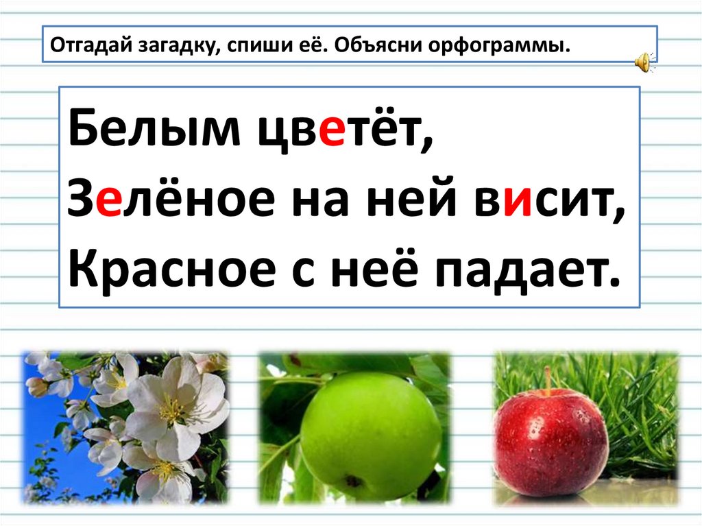Отгадай загадку, спиши её. Объясни орфограммы.Белым цветёт,