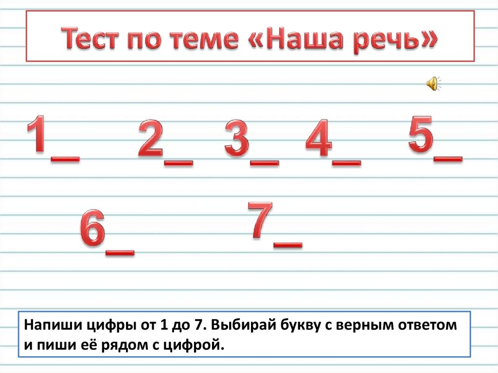 Напиши цифры от 1 до 7. Выбирай букву с верным ответоми пиши её рядом с цифрой.