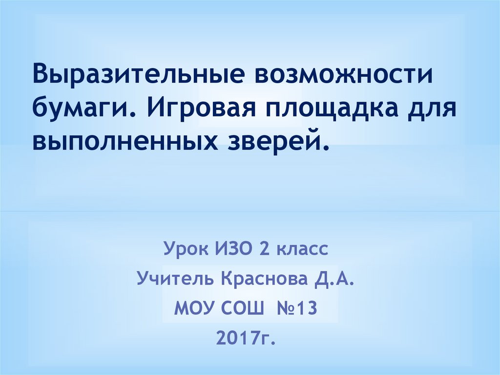 Выразительные возможности бумаги. Игровая площадка для выполненных зверей