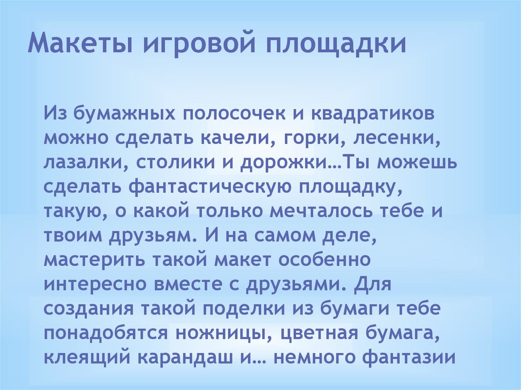 Макеты игровой площадкиИз бумажных полосочек и квадратиков
