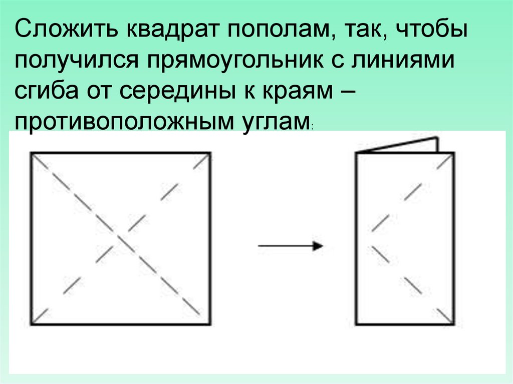 Сложить квадрат пополам, так, чтобыполучился прямоугольник с линиями