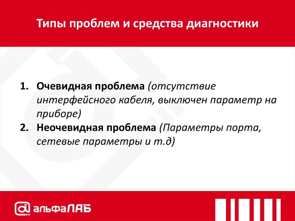 Типы проблем и средства диагностики1. Очевидная проблема (отсутствие