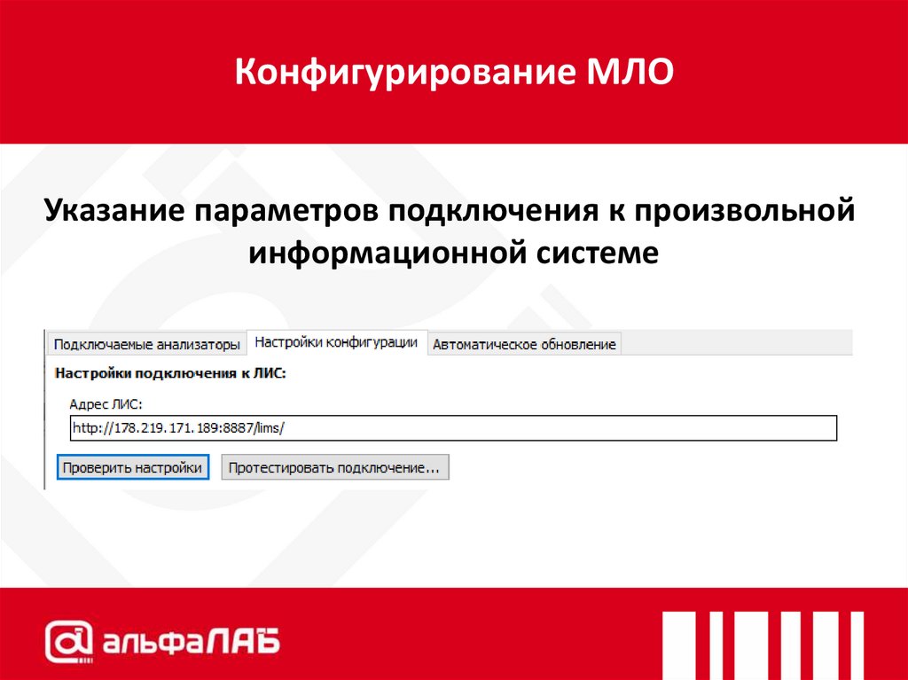 Использование МЛО. Вариант 4Подключение МЛО к ЛИС «АльфаЛАБ»