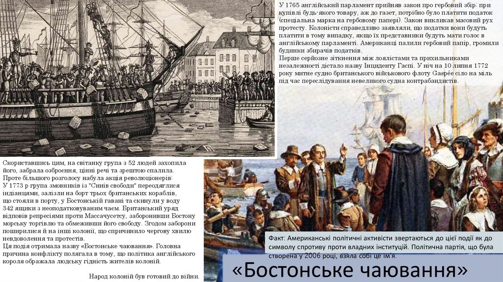 англійському парламенті. Американці палили гербовий папір, громили
