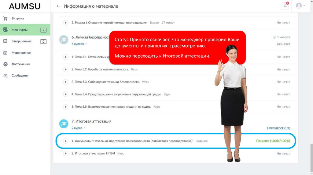 Статус Принято означает, что менеджер проверил Вашидокументы и принял их к рассмотрению.