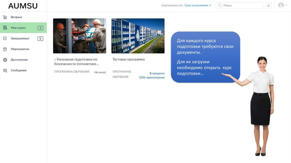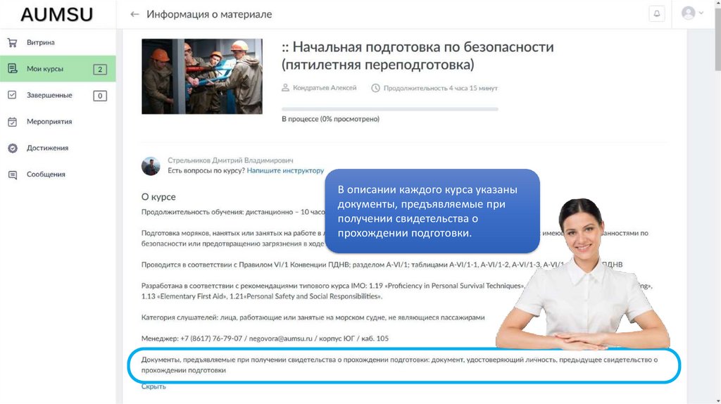 В описании каждого курса указаныдокументы, предъявляемые при