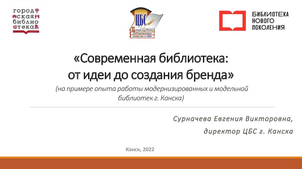 1. «Современная библиотека: от идеи до создания бренда» (на примере опыта работы модернизированных и модельной библиотек г.