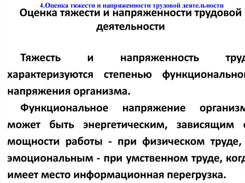 4.Оценка тяжести и напряженности трудовой деятельности4.Оценка тяжести и напряженности трудовой деятельности