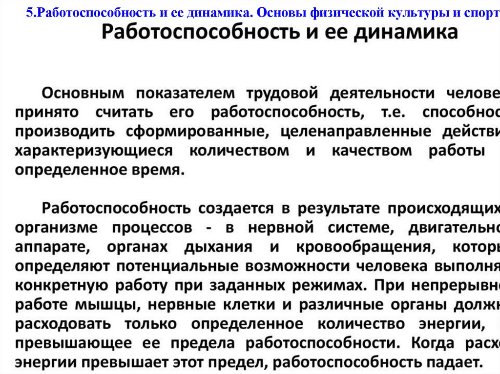 5.Работоспособность и ее динамика. Основы физической культуры и спорта38.