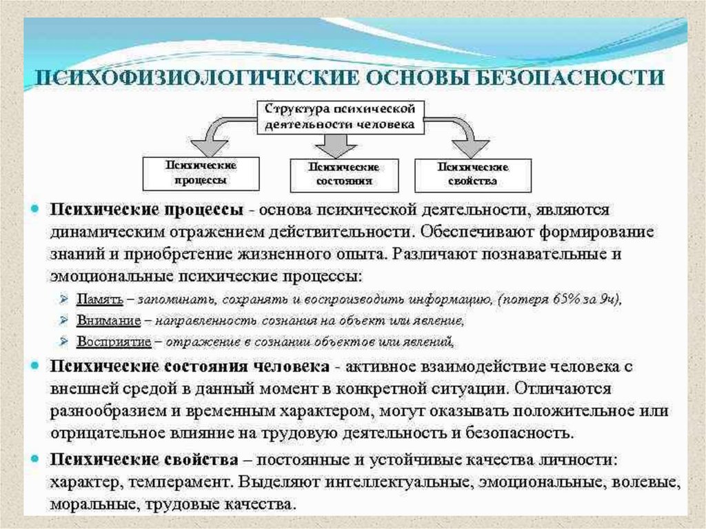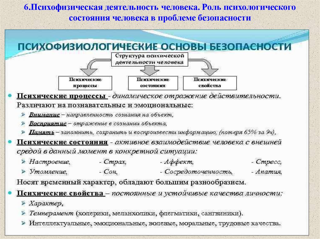 6.Психофизическая деятельность человека. Роль психологическогосостояния человека в проблеме безопасности