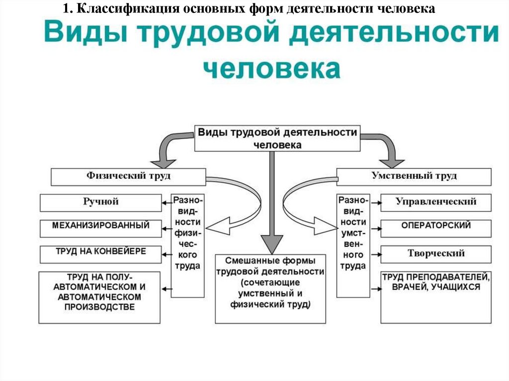 1. Классификация основных форм деятельности человека1. Классификация основных форм деятельности человека