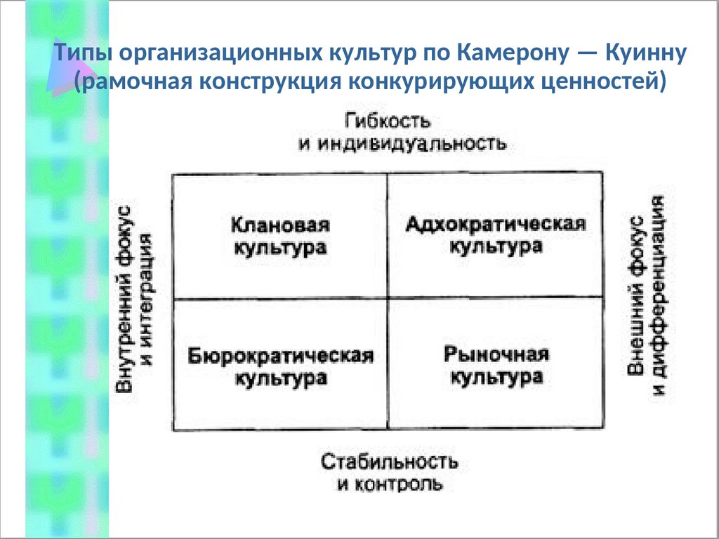 Типы организационных культур по Камерону — Куинну(рамочная конструкция конкурирующих ценностей)