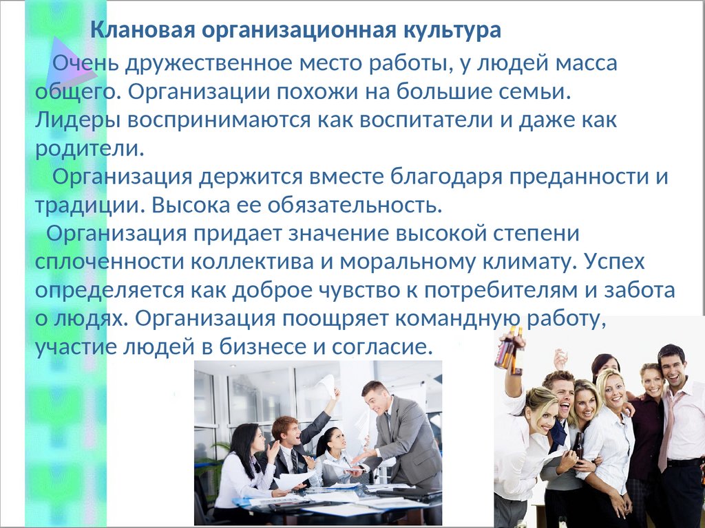 Клановая организационная культураОчень дружественное место работы, у людей масса