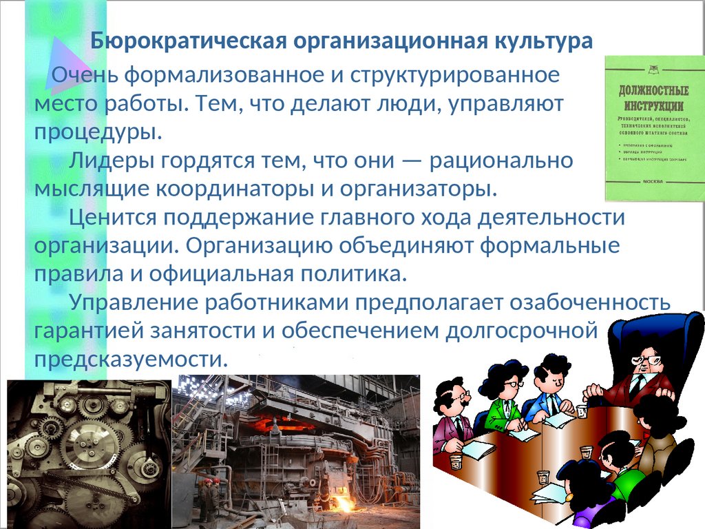 Бюрократическая организационная культураОчень формализованное и структурированное