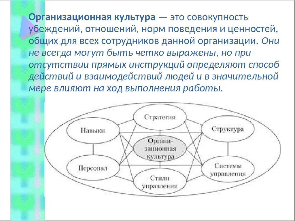 Организационная культура — это совокупностьубеждений, отношений, норм поведения и ценностей,