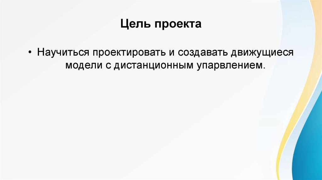Цель проекта• Научиться проектировать и создавать движущиеся