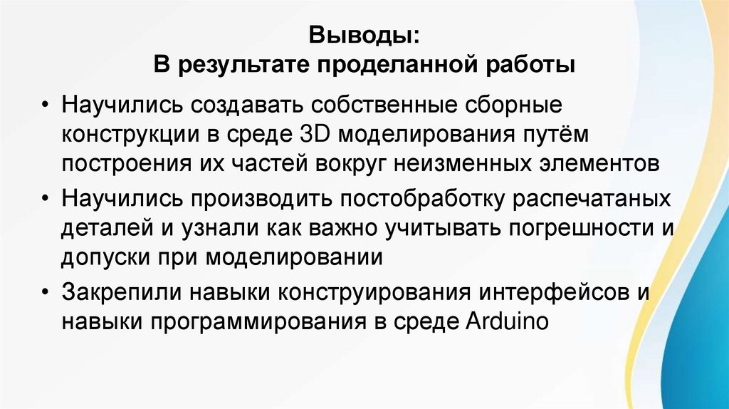 • Научились производить постобработку распечатаных