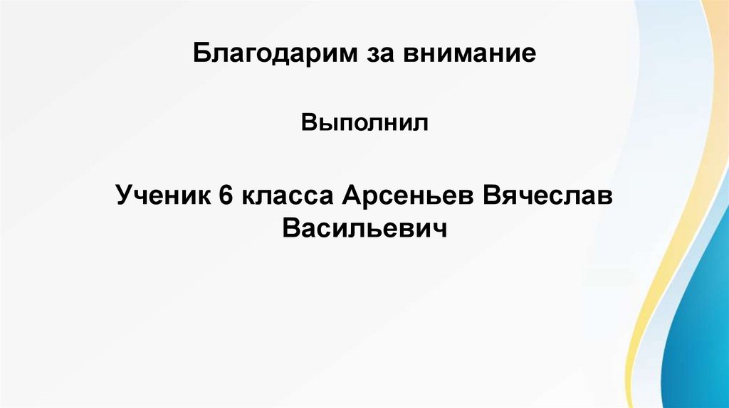 Выполнил: ученик 6 класса Арсеньев Вячеслав