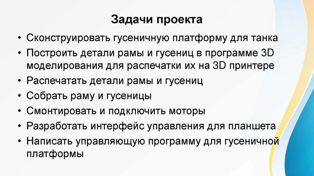 Задачи проекта• Сконструировать гусеничную платформу для танка