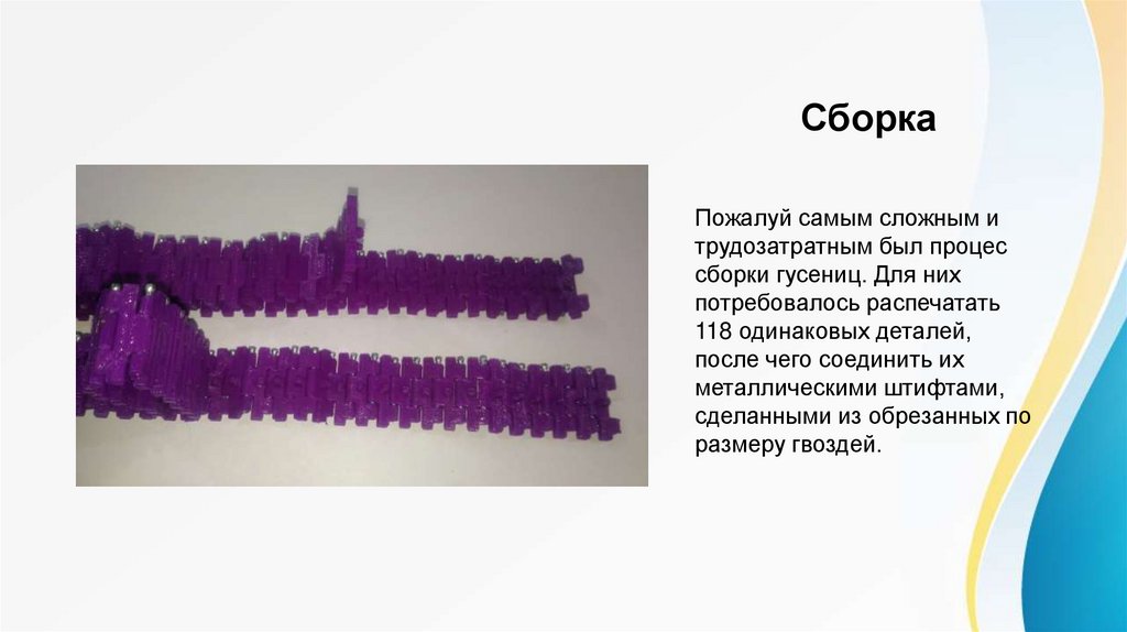 • Распечатать детали рамы и гусениц