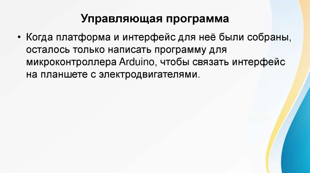 Управляющая программа• Когда платформа и интерфейс для неё были собраны,