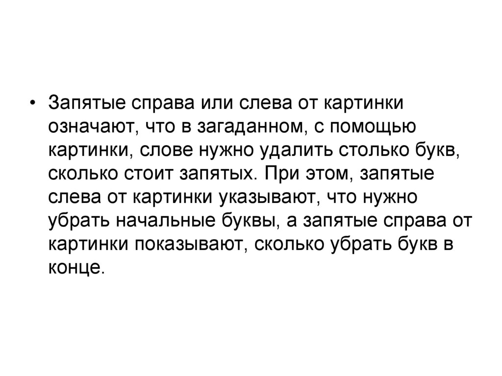 • Запятые справа или слева от картинкиозначают, что в загаданном, с помощью