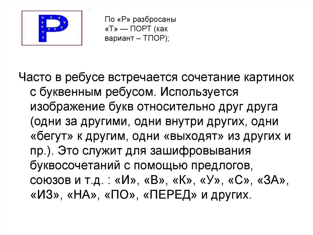 По «Р» разбросаны«Т» — ПОРТ (как