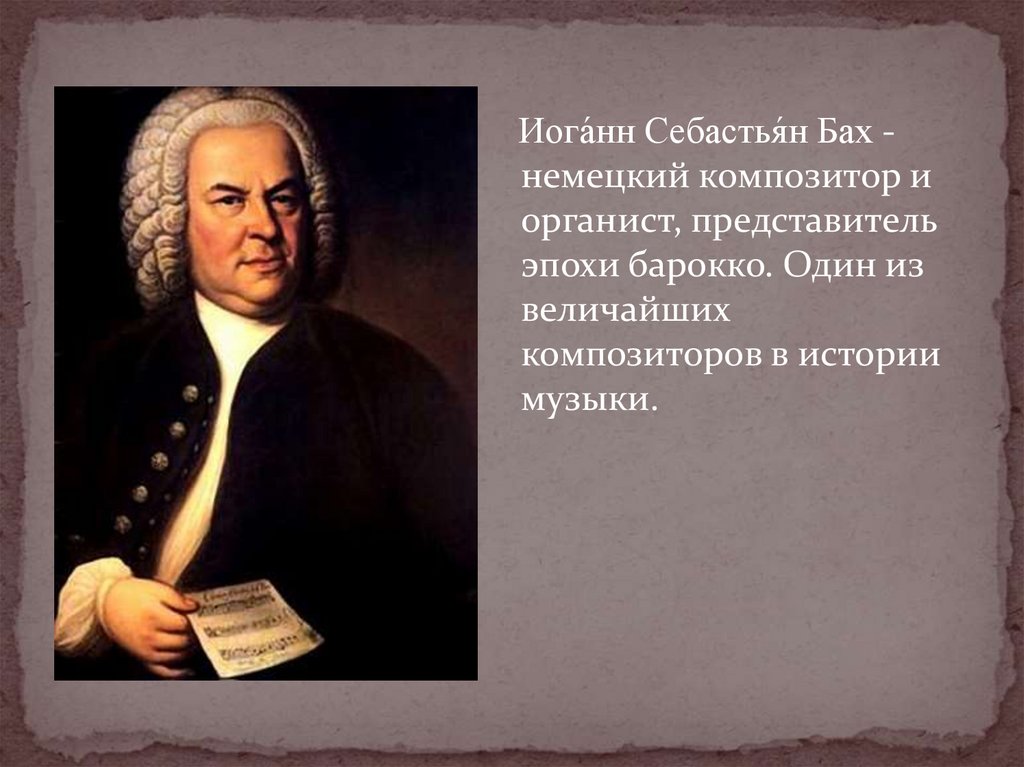 Иога́нн Себастья́н Бах немецкий композитор иорганист, представитель