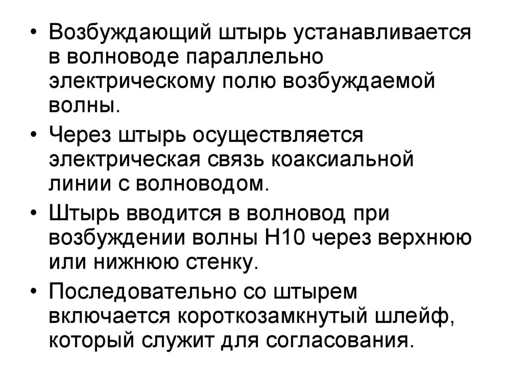 • Возбуждающий штырь устанавливаетсяв волноводе параллельно