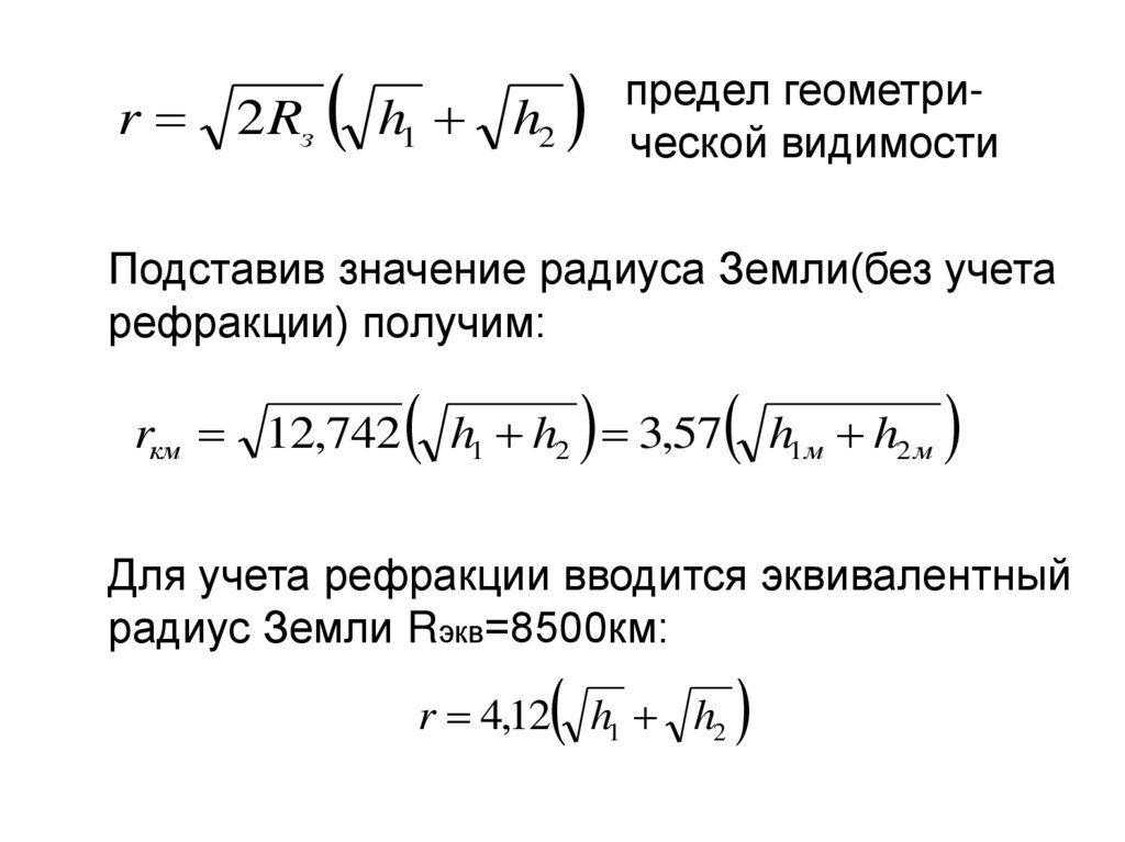 Для учета рефракции вводится эквивалентный
