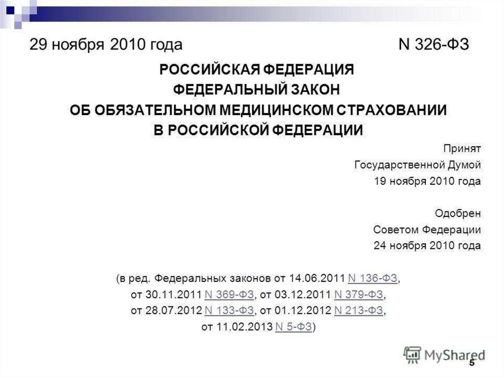 от 29.11.2010 N 326-ФЗ (ред. от28.12.2016) "Об обязательном