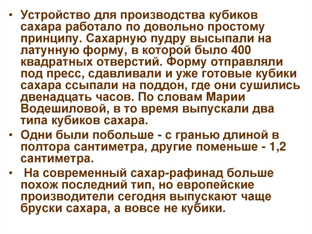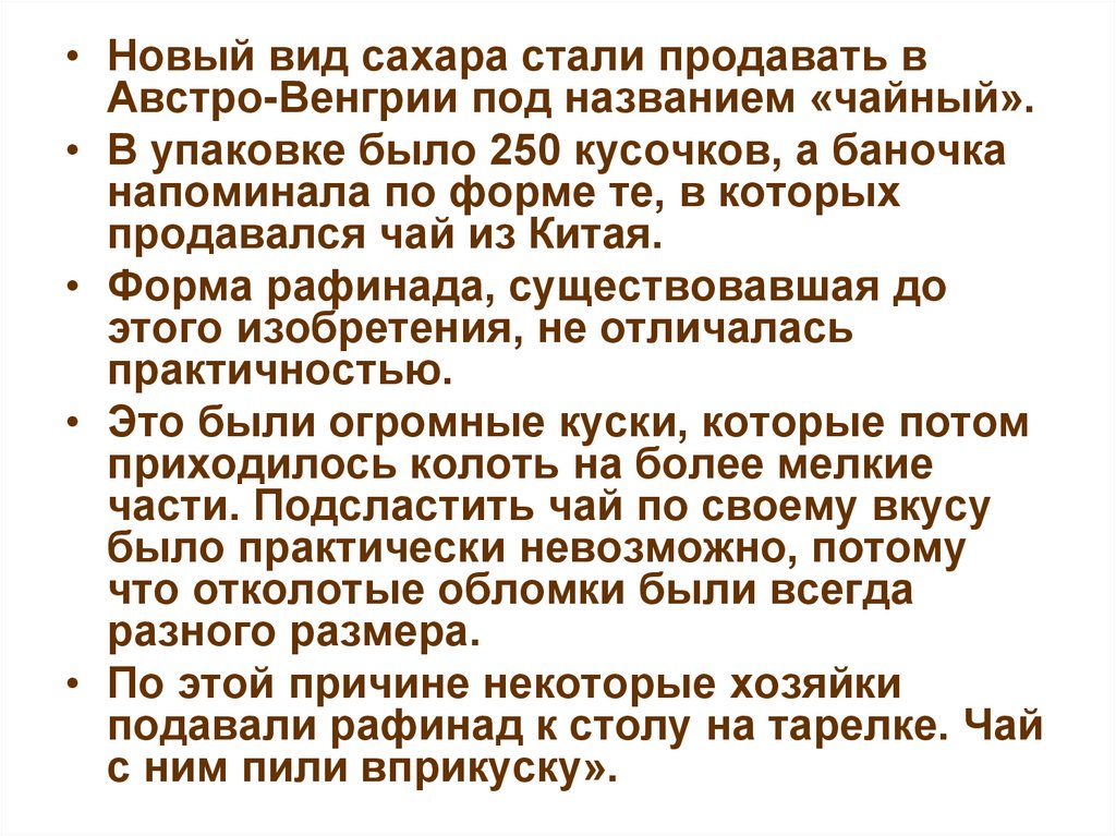 • Первые сахарорафинадные заводыбыли построены в 18 веке в